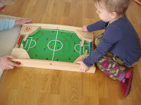 Auf den tränenreichen Abschied der Kinder folgte eineTränentrocknung durch Neugestaltung der Spielecke vor dem Nähbüdchen: ein kleiner Tisch und 2 Stühle - Juchu!